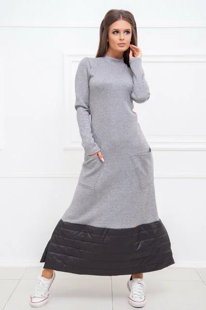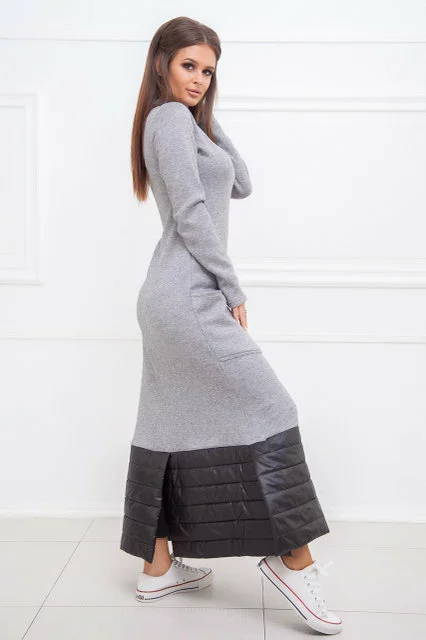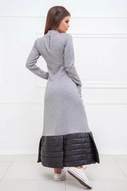 А-образный силуэт. Два накладных кармана по бокам. Небольшой воротник-стойка. Длинный рукав. Подол декорирован стеганой плащевкой. Застежка- открытая металлическая молния на спинке. Длинна - ок.130см. Ткань - трикотаж "ангора"/ плащевка на сентипоне. Сезон - Зима. Коллекция Осень-Зима. Производство ― Lilitodessa.