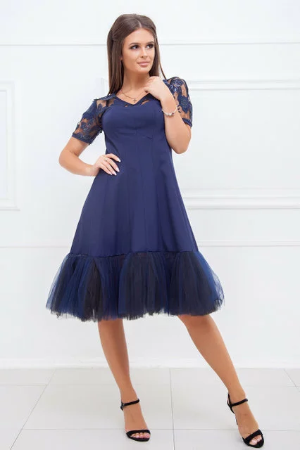 Красивый лиф с V-образным вырезом и короткий рукав выполнены из полупрозрачного гипюра. Подол оторочен воздушным фатином в тон. Застежка - потайная молния на спинке. Длинна - ок.100см. Ткань - креп / нарядный гипюр на сетке / фатин (стрейтч). Сезон - Демисезон. Коллекция Осень-Зима. Производство ― Lilitodessa.